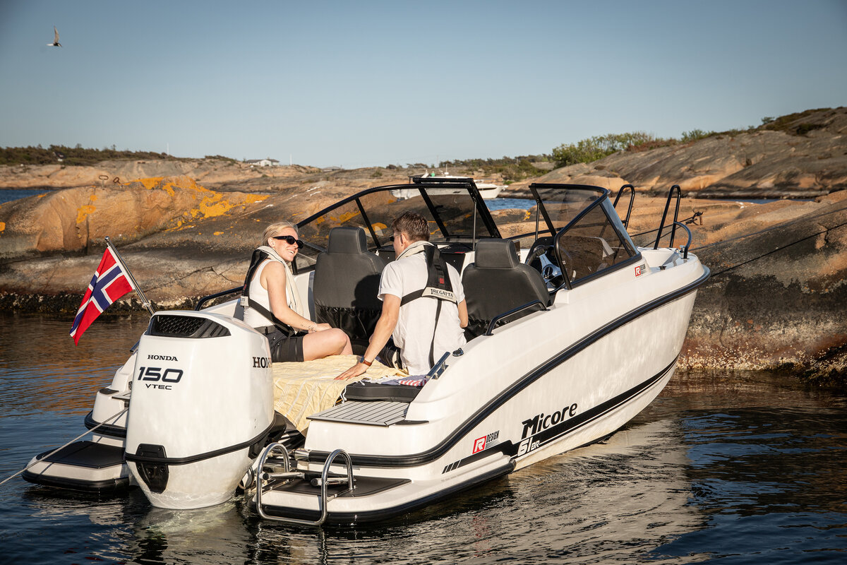 Badplattform(er) er standard på båten, og Micore 61br er utviklet med fokus på smarte detaljer, god funksjonalitet og et helhetlig design. Resultatet er en båt som legger til rette for fine sommerdager på vannet – med gode muligheter for både tur og sosialt samvær om bord.