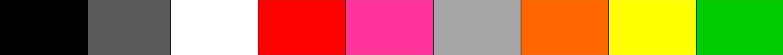 Grå, Grønn, Gul, Hvit, Lysgrå, Oransje, Rød, Rosa, Sort