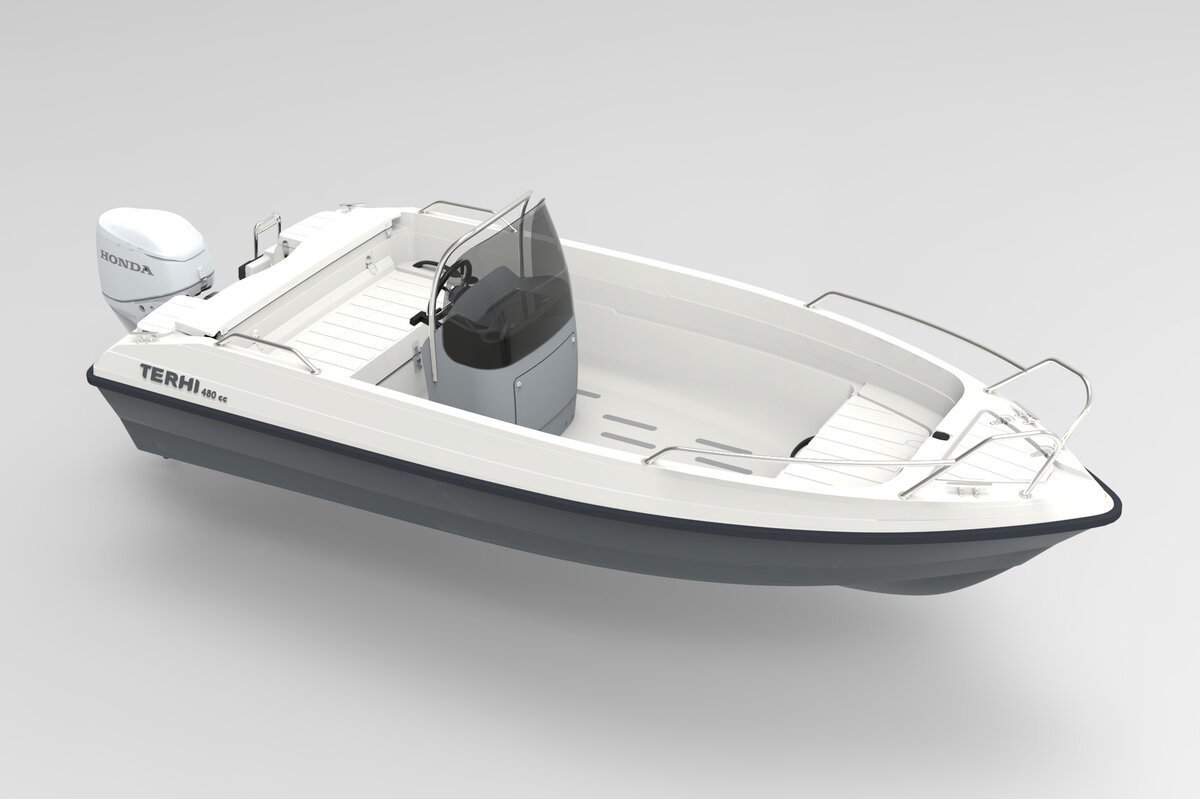Terhi 480 CC er en romslig og praktisk åpen båt med midtkonsoll, basert på det velprøvde 480-skroget. I motsetning til de øvrige modellene i serien leveres 480 CC med et stilrent, grått skrog. De store, åpne dekksflatene gir gode arbeidsforhold og gjør det enkelt å bevege seg rundt i båten.